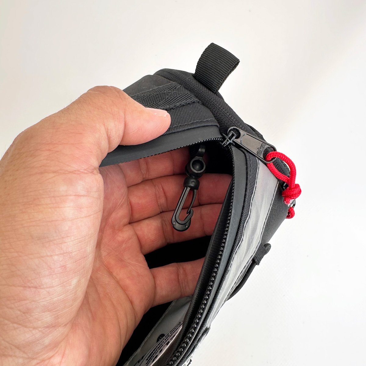 Tiene un total de 3 bolsillos independientes + 1 bolsillo oculto + 1 cordón caucho multiproposito